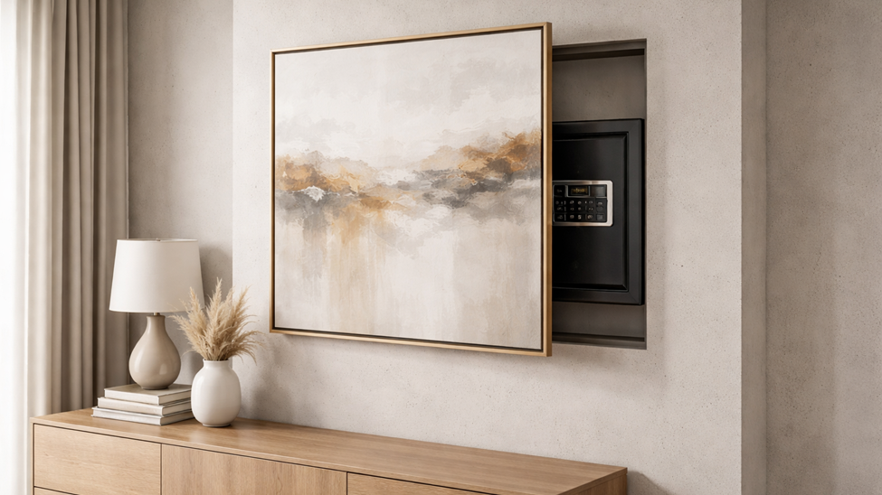 Отдельный момент - как спрятать сейф в стене безошибочно. Маскировка обязана закрывать доступ визуально, но не создавать давления на дверцу и не мешать её открытию. Чаще всего используют мебель, декоративные панели или картины - так он остаётся незаметным, но полностью функциональным.