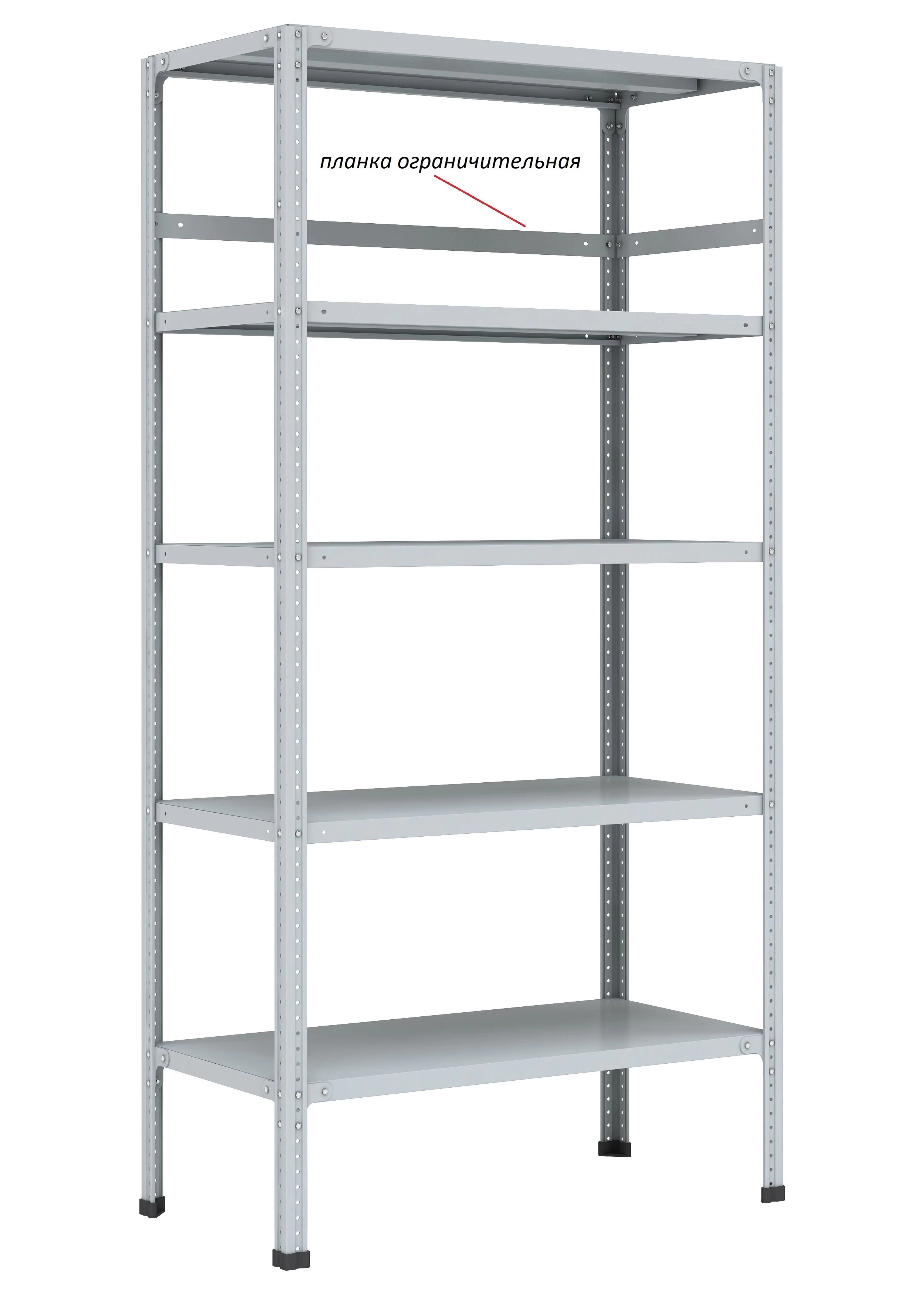- Стеллаж можно дополнить боковыми и задними стенками, ограничительными планками, разделителями полок, а также дополнительными рёбрами жёсткости: ребро вставляется в продольные загибы полки, увеличивая нагрузку на неё до 180 кг.